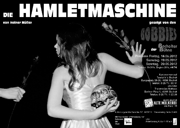 Heiner Müllers(1929-1995) Hamletmaschine ist vermutlich die kürzeste und inhaltsreichste (Nicht-) Tragödie der Weltgeschichte. Knapp 9 Seiten umfasst das Werk. Geschrieben wurde es 1977, nachdem Müller Hamlet übersetzte. Dennoch hat es nichts von seiner Aktualität eingebüßt. Nicht lang, dafür aber ungeheur intensiv. Kaum zu lösende Bühnenbilder Schauspieler Rollenverweigerer Amazonen Irre Musik Hohn Spott Frust Wut Trauer und ein tiefes Belachen des alltäglichen Wahnsinns: all das und noch viel mehr darf der Zuschauer erwarten, wenn er sich hebt: der Vorhang für die Hamletmaschine der BOBBIES. Und sie dürfen raten, wer dort gerade spricht: Sind es die Schauspieler oder die Figuren?